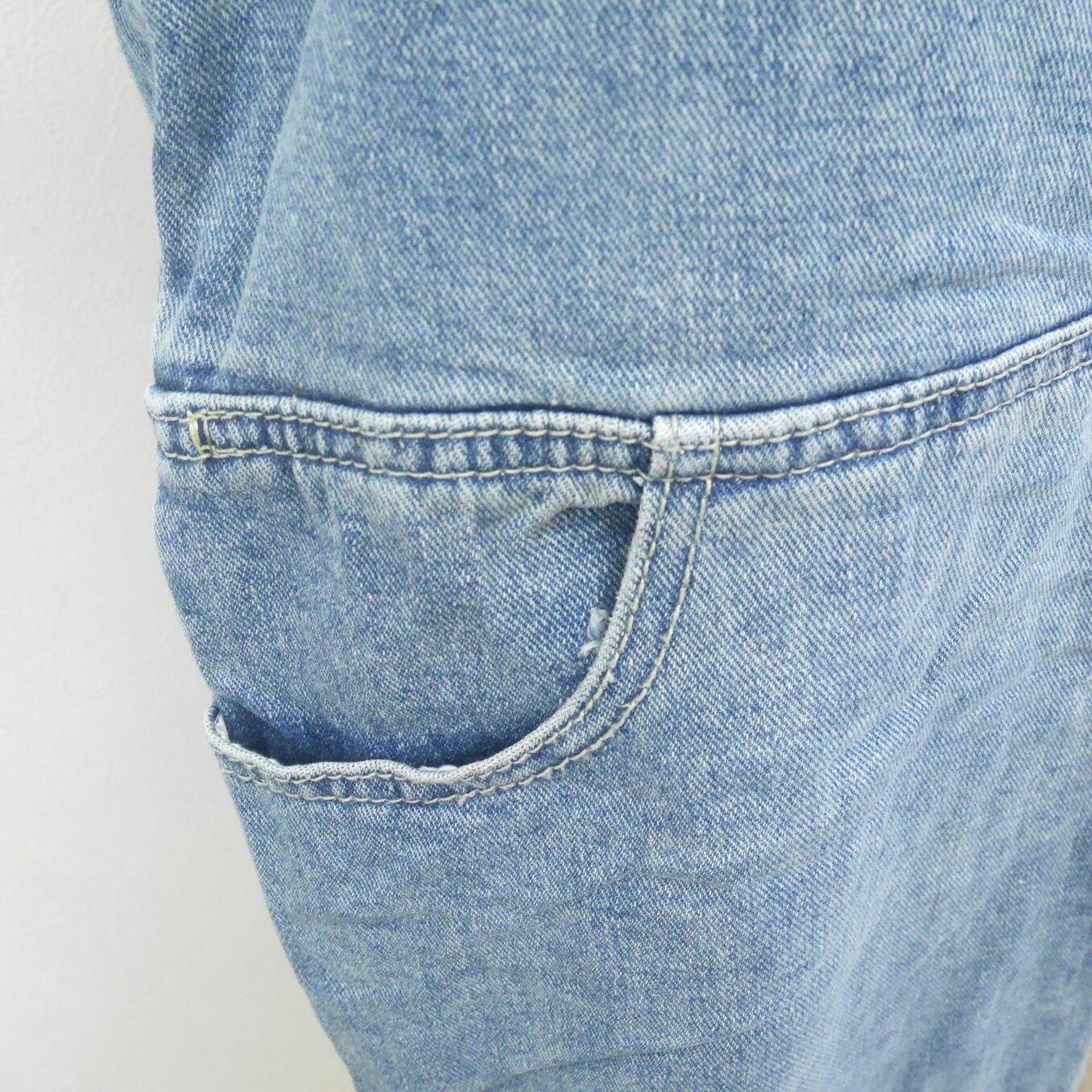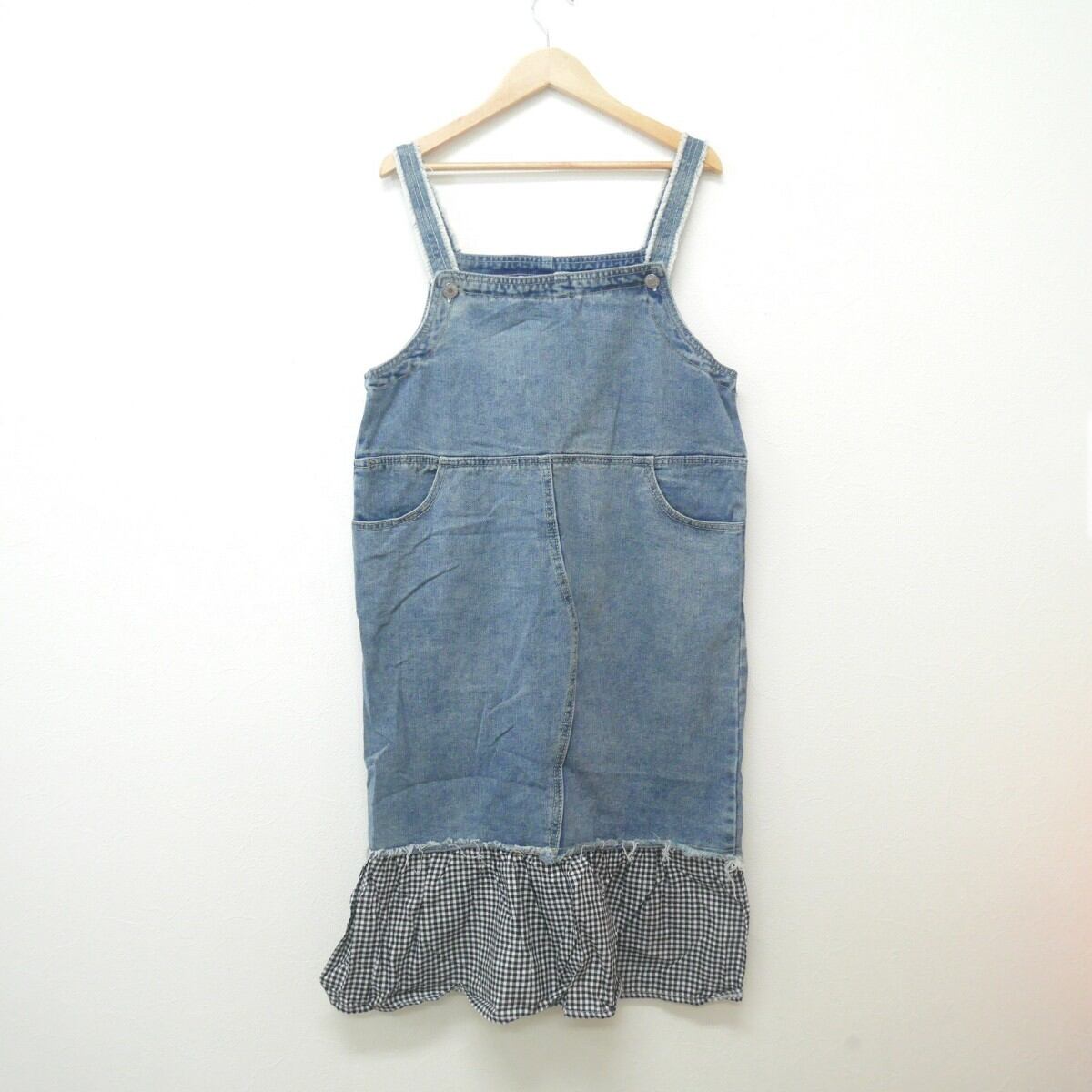 【送料無料】デニム×ギンガムチェック 裾フリル サロペット ワンピース
