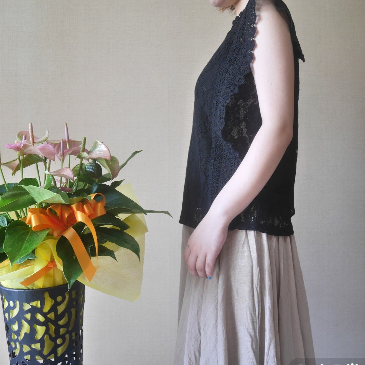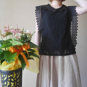 繊細なフラワーレースがフェミニンなノースリーブトップス。