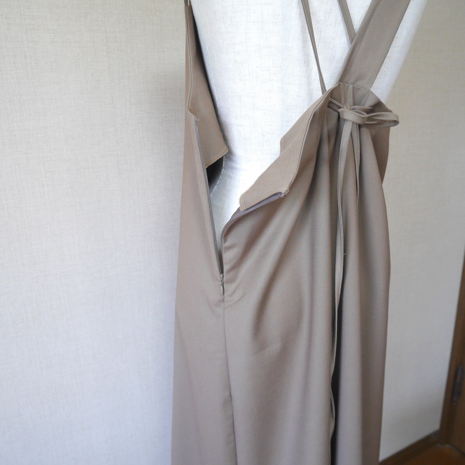 【MADE IN KOREA-送料無料-】バックリボン ユニークジャンパースカート(ベージュ) / アシンメトリー