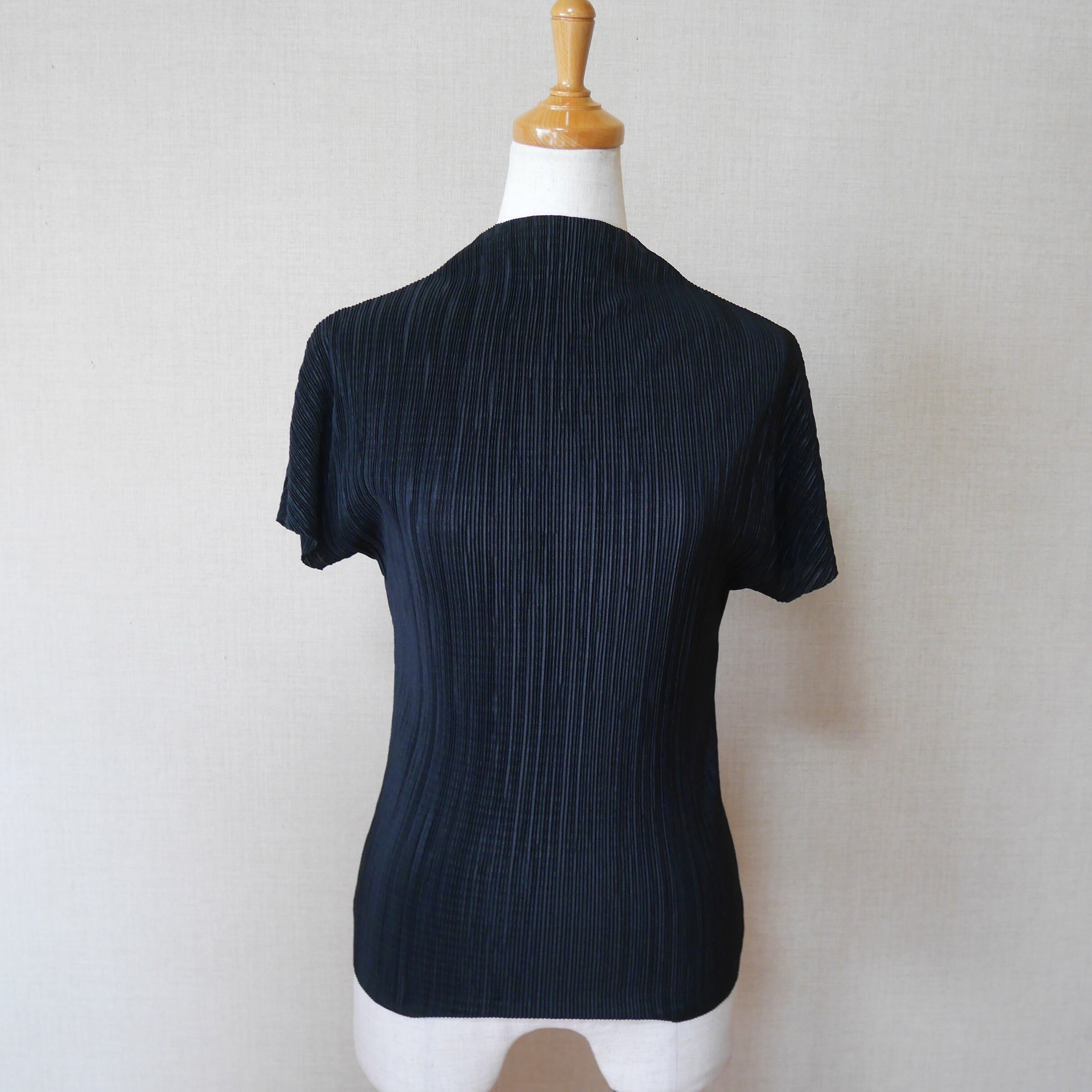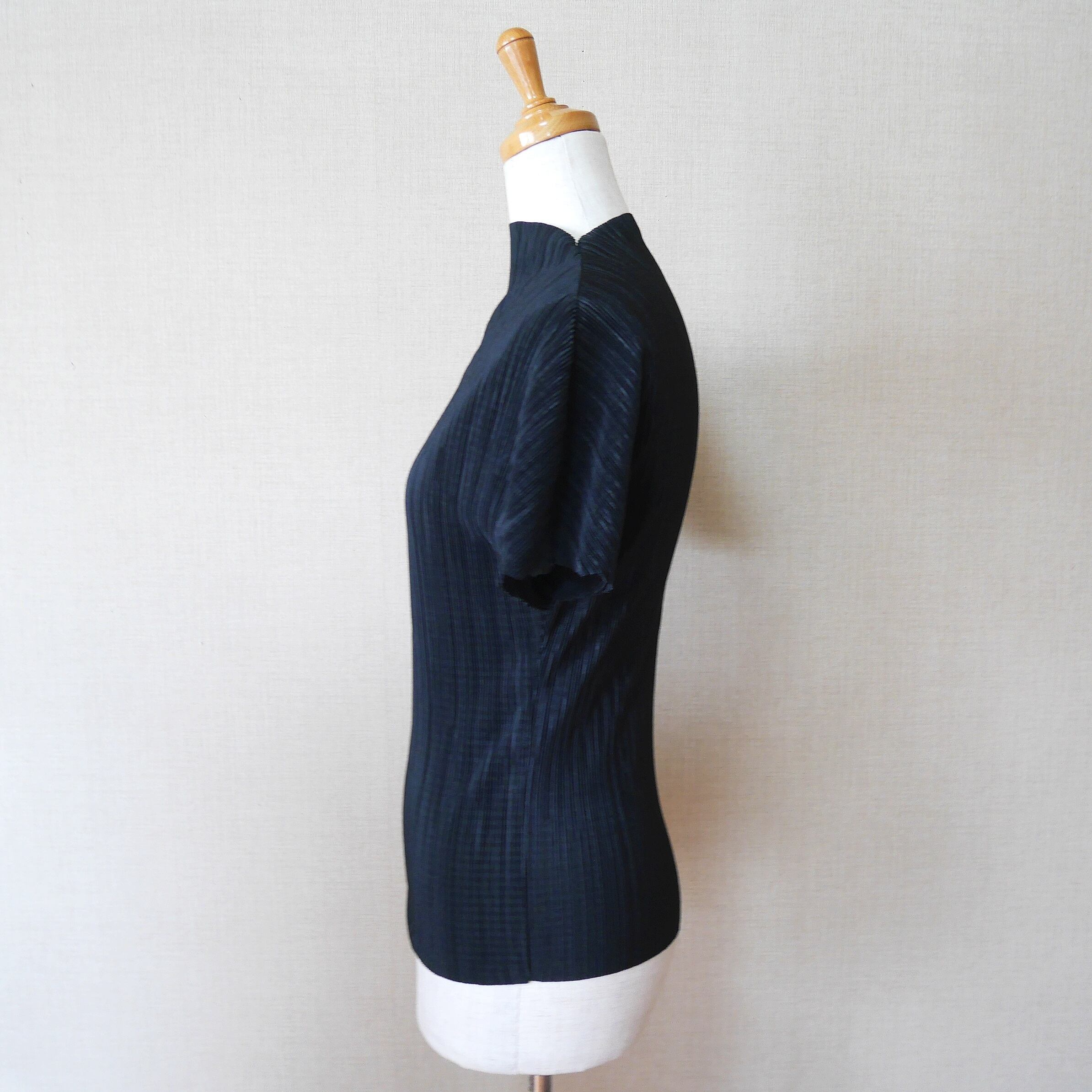 【MADE IN KOREA-送料無料◎-】プチハイネック プリーツTシャツ トップス(ブラック) / 韓国ファッション