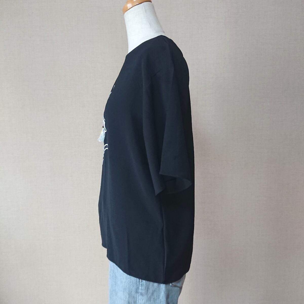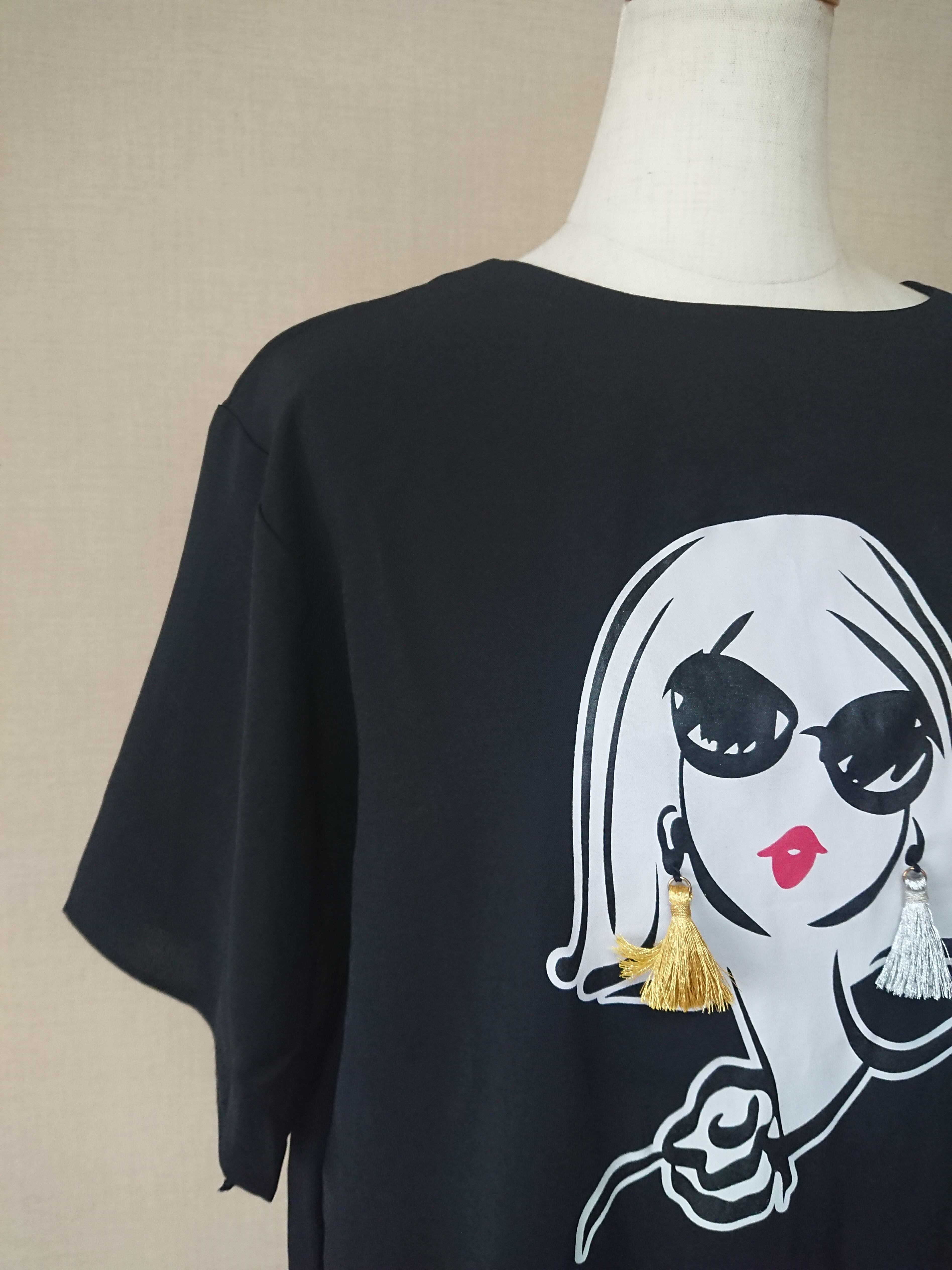 【MADE IN KOREA-送料無料】earring ピープル カットソー Tシャツ(ブラック)