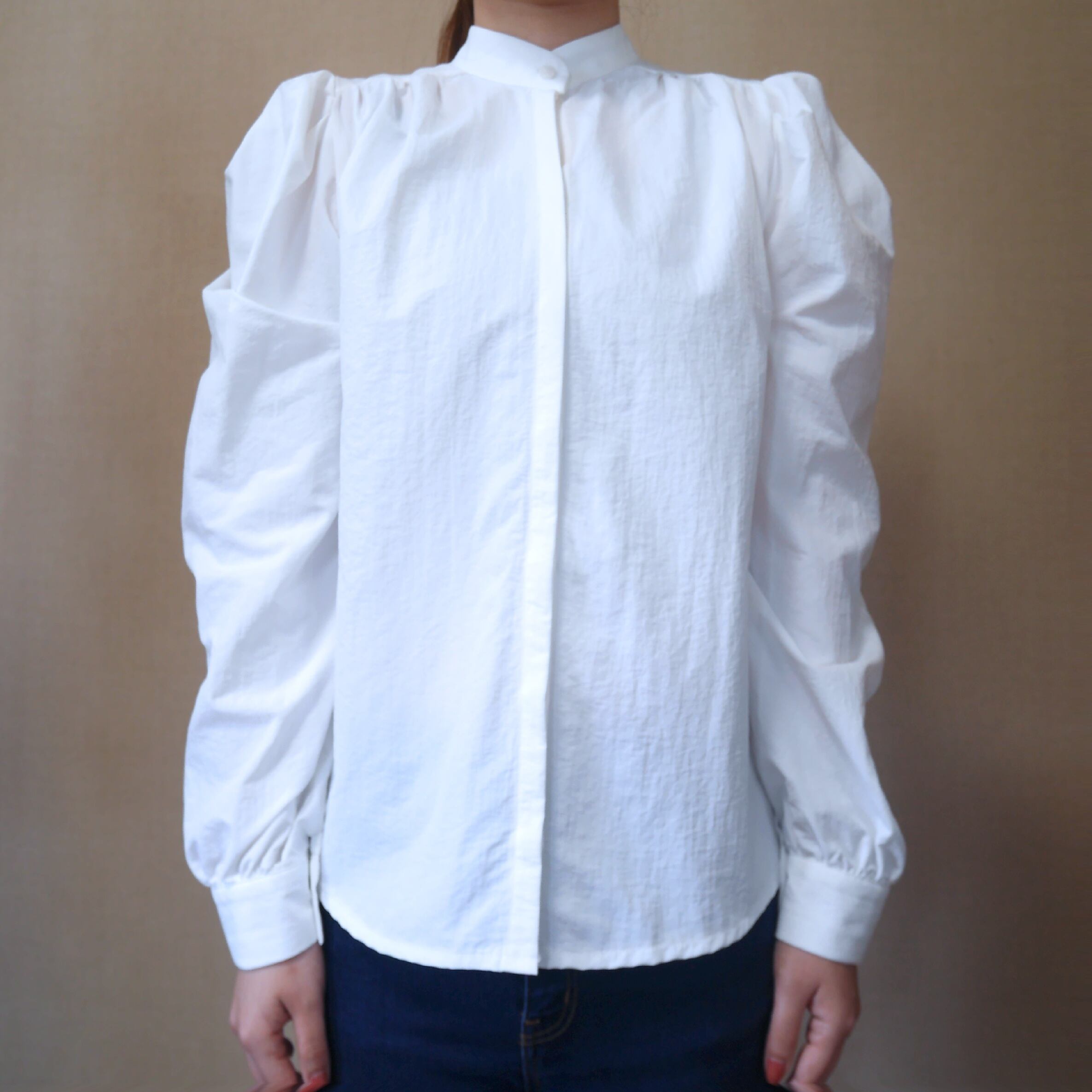 【送料無料◎-MADE IN KOREA-】バックボタン×パフスリーブブラウス(ホワイト)