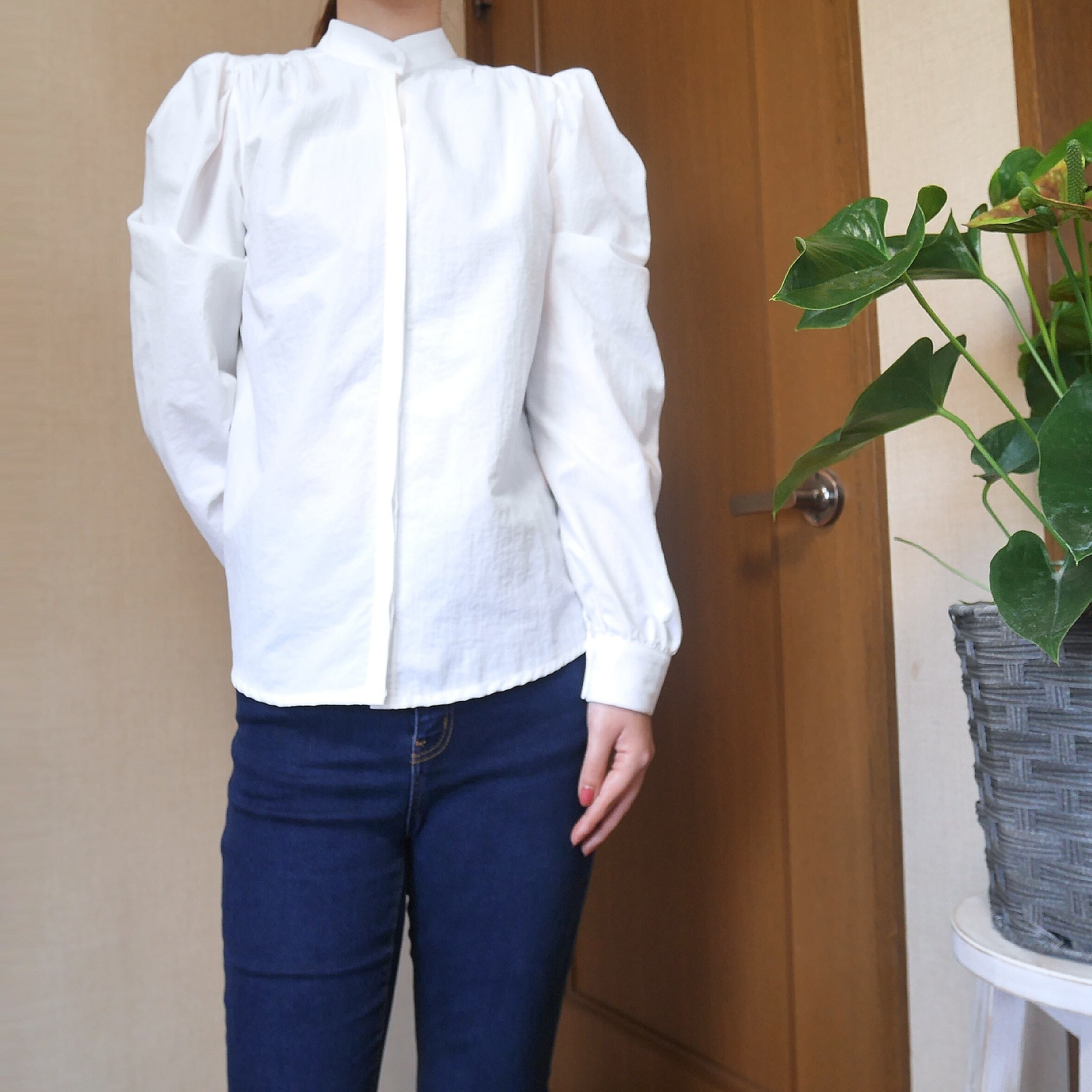 パフスリーブに後ろボタンのデザイン、前後どこから見てもオシャレでかわいいブラウスです。上品さを兼ね備えたトップスなので、ジーンズと合わせてカジュアルに着用するだけでなく、様々なシーンで楽しんで頂けます◎