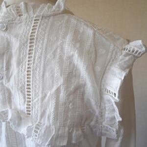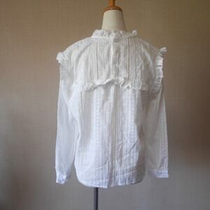 フリルや控えめな地柄がアクセントになったガーリーなコットンブラウス。